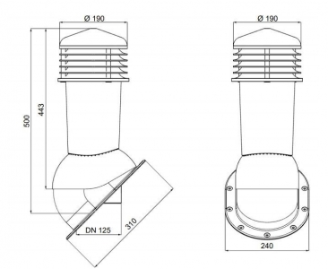 • Комплект вентиляционного выхода с отводом конденсата для кровли из гибкой битумной черепицы (готовой). В конструкции вентвыхода предусмотрены специальные каналы для отвода конденсата на кровельное покрытие.