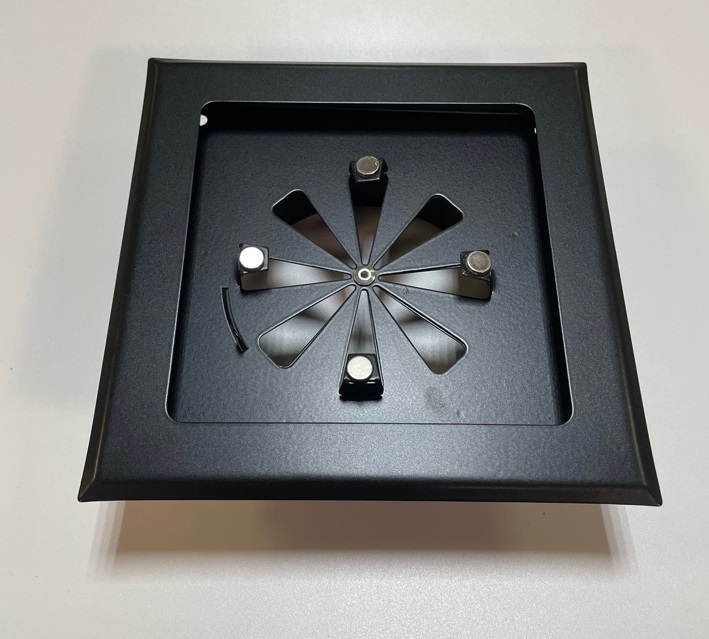 Благодаря магнитам, крепление получается невидимым что не портит внешний вид, и позволяет без труда снимать решетку для обслуживания системы.