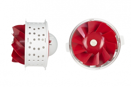 Рабочее колесо смешанного типа с диагональными лопатками, сочетает в себе высокую производительность осевых вентиляторов и высокое давление центробежных. Обтекатель корректирует поток воздуха после рабочего колеса и выпрямителя во избежание потерь из-за завихрений.