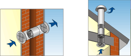 Вентилятор Tubo 100 TP может быть установлен внутри воздуховода или между двумя воздуховодами.