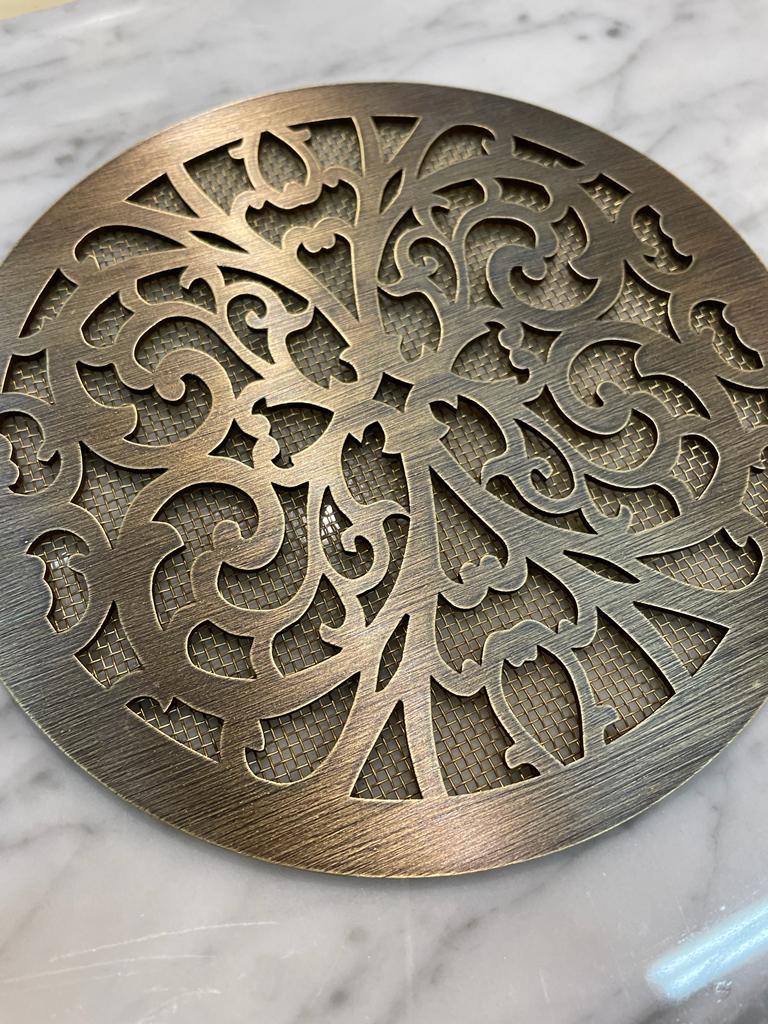 Латунная вентиляционная решётка круглая шлифованная с патиной ЛРК 354 150мм
