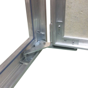 Рама люка для ревизии «Триумф» выполнена из алюминиевого профиля коробчатой формы и Г-образной в сечении для максимальной жесткости и удобства монтажа. Дверца люка изготавливается и алюминиевого профиля Т-образной формы, переменного сечения, с выраженными ребрами жесткости, что делает её конструкцию более жесткой в отличие от своих предшественников. Так как немаловажно исключить перекосы конструкции дверцы, чтобы не допустить деформации наклеенных на нее материалов. В отличие от наших конкурентов, толщина стенок алюминиевого профиля у нас по-прежнему 2 мм и более.
