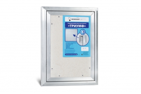Рама люка для ревизии «Триумф» выполнена из алюминиевого профиля коробчатой формы и Г-образной в сечении для максимальной жесткости и удобства монтажа. Дверца люка изготавливается и алюминиевого профиля Т-образной формы, переменного сечения, с выраженными ребрами жесткости, что делает её конструкцию более жесткой в отличие от своих предшественников. Так как немаловажно исключить перекосы конструкции дверцы, чтобы не допустить деформации наклеенных на нее материалов. В отличие от наших конкурентов, толщина стенок алюминиевого профиля у нас по-прежнему 2 мм и более.