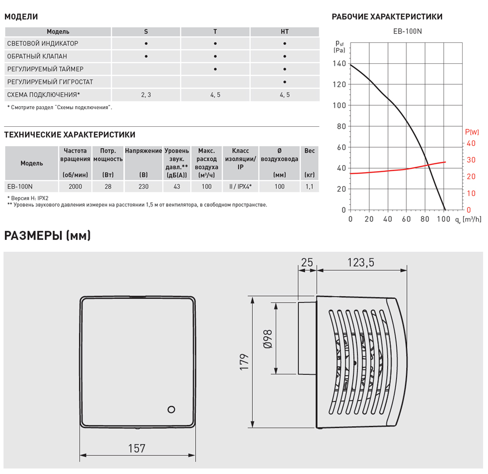 Серия EB-N изготовляется исключительно одним 100мм диаметром, который в свою очередь может оснащаться таймером или гигростатом: