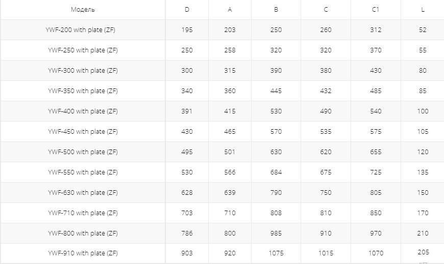 где: YWF – серия осевого вентилятора с защитной решеткой;