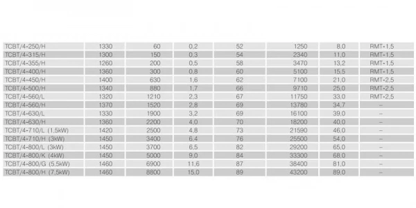 - Двухскоростные электродвигатели (4/8 полюсные для типоразмеров от 450до 800).