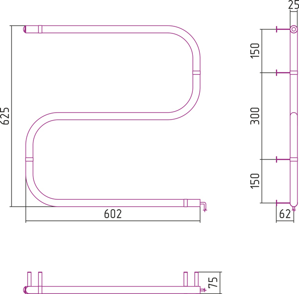Полотенцесушитель электрический Стилье ЭПС S-образный 600x600 (53 Вт)