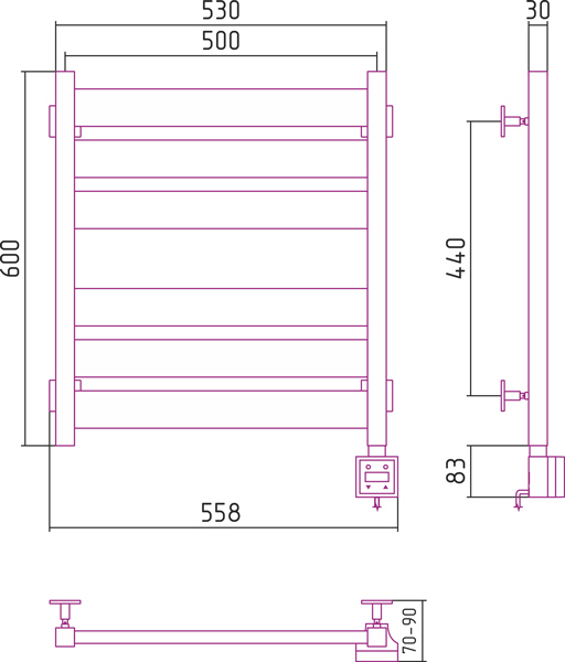 Полотенцесушитель электрический Сунержа Модус 2.0 600x500