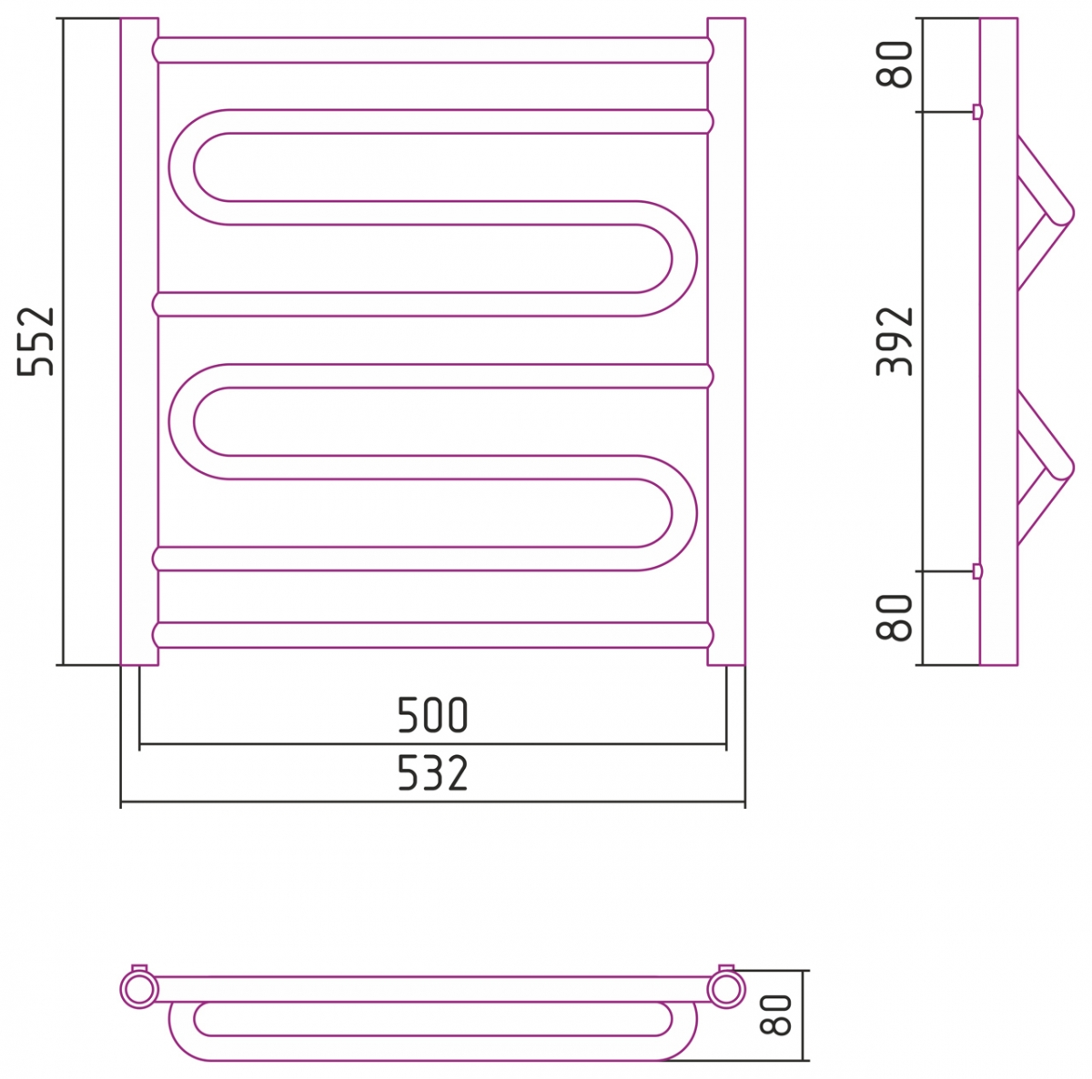 Размер полотенцесушителя:600x500