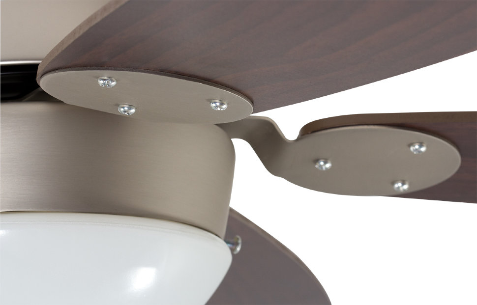 - Переключатель реверса двигателя расположен на корпусе вентилятора, им пользователь может изменить направление вращения лопастей. Вращение лопастей «по часовой стрелке» обеспечивает процесс рекуперации тепла в помещении (рекомендуется применять в холодное время года), путем перемещения теплого воздуха от потолка вниз.