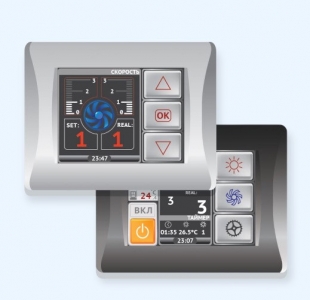 Установка имеет энергоэффективный ЕС – вентилятор. В нем отсутствуют тепловые потери, что позволяет достигать более высокий КПД - 80–90 %. Плавное и глубокое регулирование оборотов, обеспечиваемое EC-двигателями дает значительный эффект в части снижения суммарных значений потребляемой мощности.