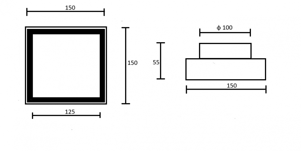 В конечном итоге виден только один ободок шириной 10 мм и размерами 150х150 или 175х175 мм, в зависимости какой размер вы выбрали.