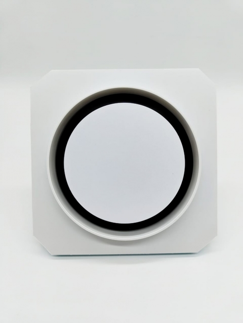Так же диффузор состоит из металлической заслонкой, которой можно регулировать поток воздуха, либо полностью перекрыть его. К заслонке с помощью магнитов крепится декоративная круглая панелька, которую можно покрасить в цвет потолка. Так же по ободку диффузора имеется молярная сетка, для надёжной фиксации шпаклёвки. Наши диффузоры оснащены москитной сеточкой, которая препятствует попаданию насекомых в помещение.