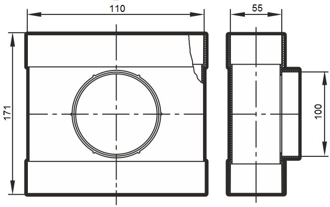Тип:Круглое сечение (диаметр 100 мм), Тройник