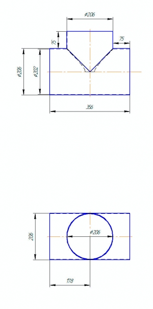 Тип:Круглое сечение (диаметр 200 мм), Тройник