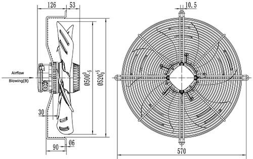 Вентилятор Ванвент YWF4E-500B-137/35-G нагнетающий (приток) на сетке (6800 m/h)