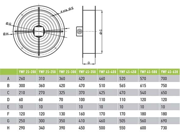 Вентилятор Ванвент YWF4S-300BE осевой в круглом канале (1690 m/h)