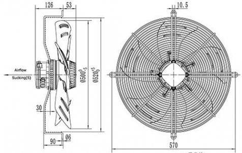 Вентилятор ВанвентYWF4D-500S-137/35-G вытяжной (всасывание) на сетке (6800 m/h)
