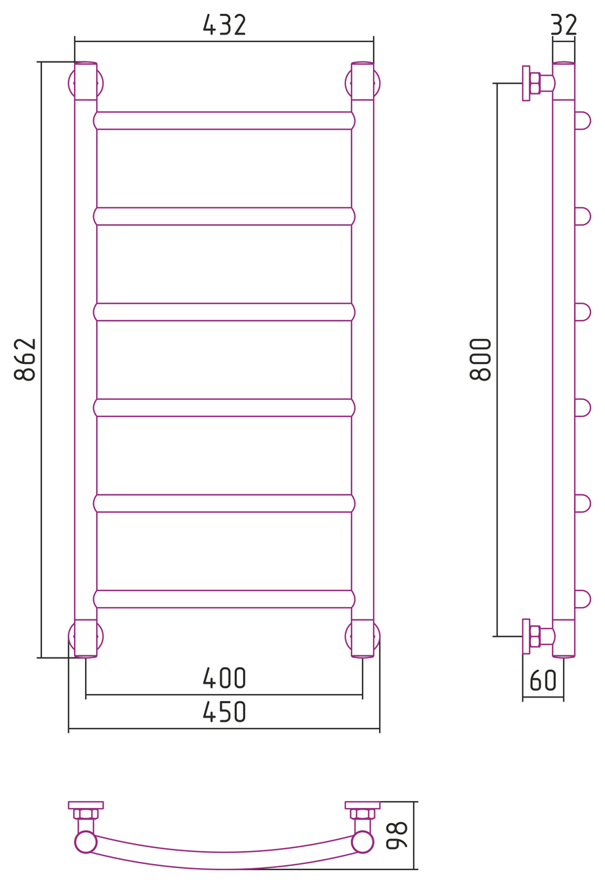 Внешние габариты (высота х ширина х глубина) (мм) : 862х450x98